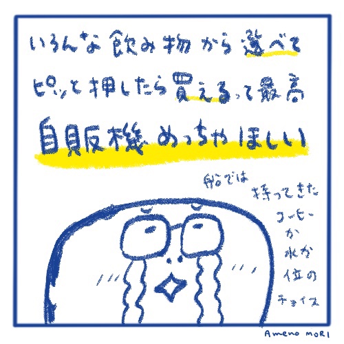 船にいたら、車の音にも、自販機にも感動できる感性が育つんだ…本当に船乗りって不思議な生活だ。
