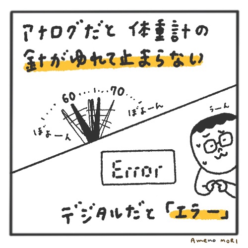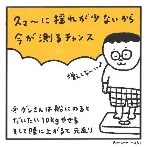 船は、当然、揺れる。そしたら、体重計の針も、当然揺れる=ちゃんと測れない!!!