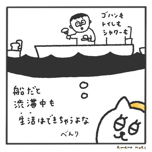 そんなわけで、えっちらおっちら、まだまだゆっくり以外に選択肢のない船。食料と水がピンチだって・・・