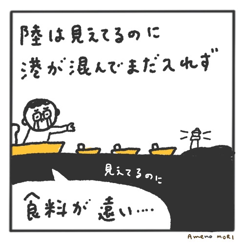 我が夫、ゲンさんが乗っている船は、港が目の前なのに、順番待ちでプカプカ浮かんでいる…