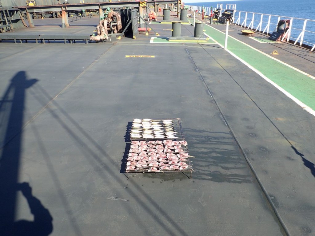 でっかい貨物船で釣りをする時、クーラーボックスは多分いらない。