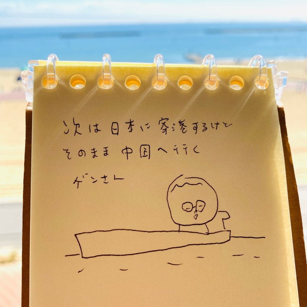 この海のずーーっと向こうにゲンさんはいます。