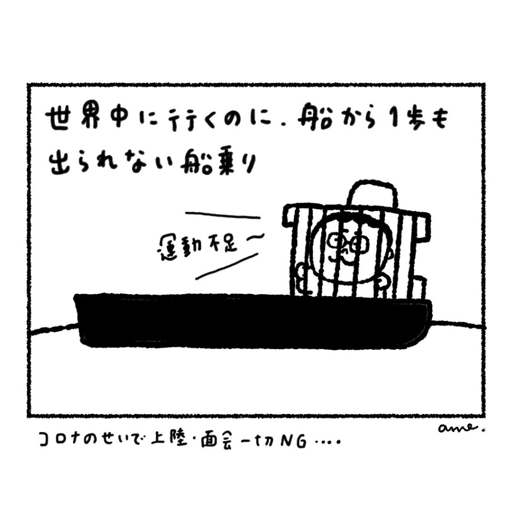 世界中を移動しているのに、船から出られない・・・そのせいで運動不足の船長。