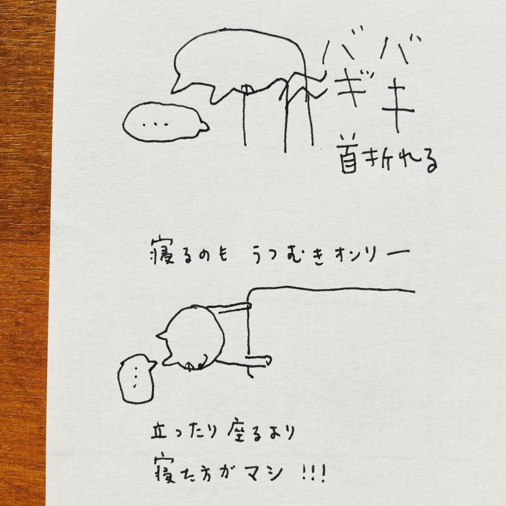 何が恐ろしいって、うつ伏せ生活から戻る時…いきなり首を上げたら酔いました。