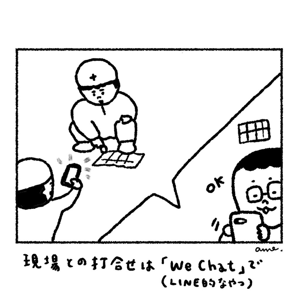 作業員さんが船の上に石で板書しながら、チャットアプリWeChatで随時共有するので、とっても便利だそうな。
