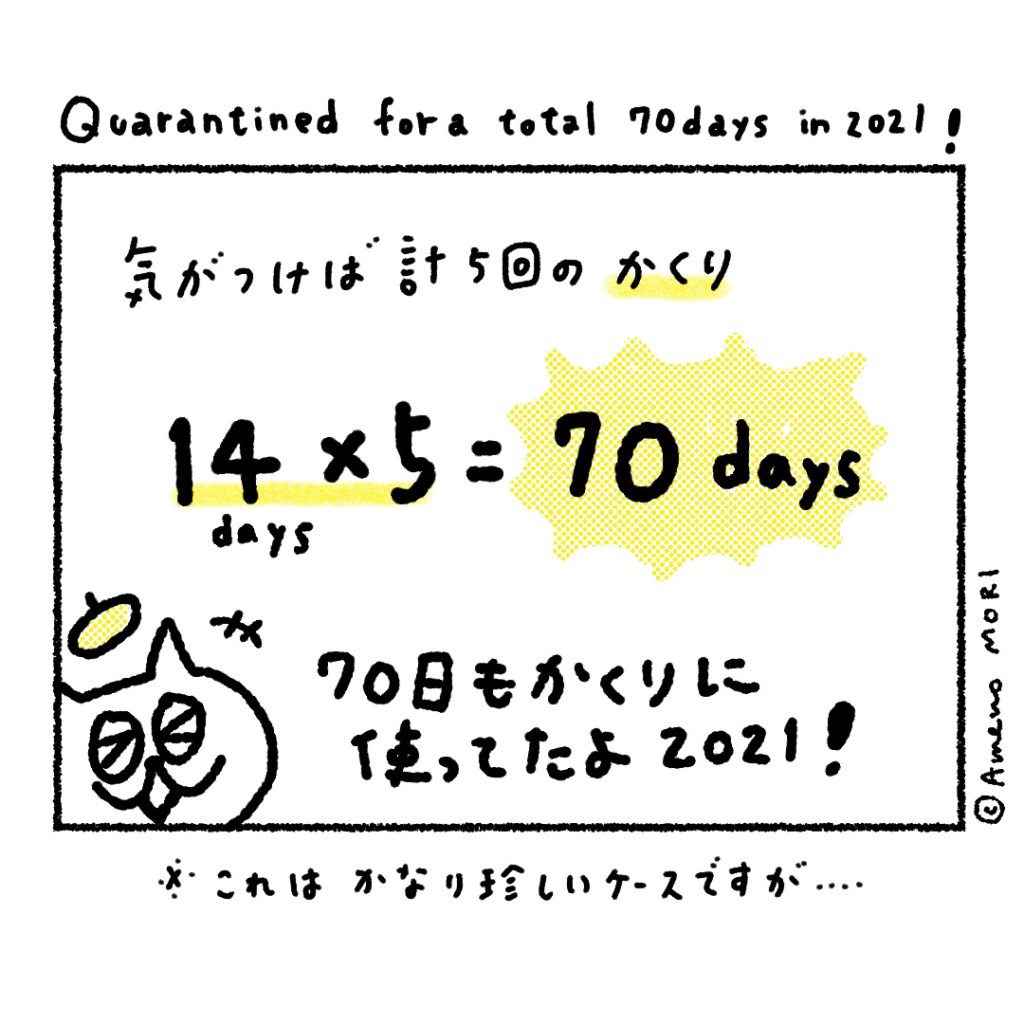 なんと合算したら、今年一年で70日も隔離生活をしていた。