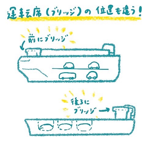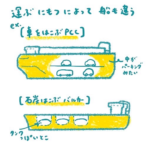 ひとくちに貨物船と言っても、結構いろんな種類があ〜る〜。会社によって、乗る船の種類もサイズも違います〜。