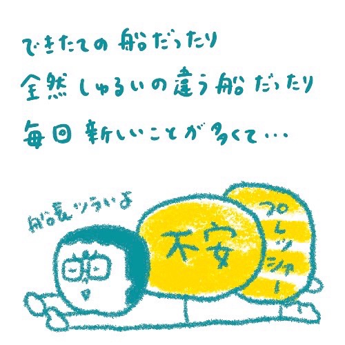 プロの船乗りでも船乗るときは不安なのね。意外。