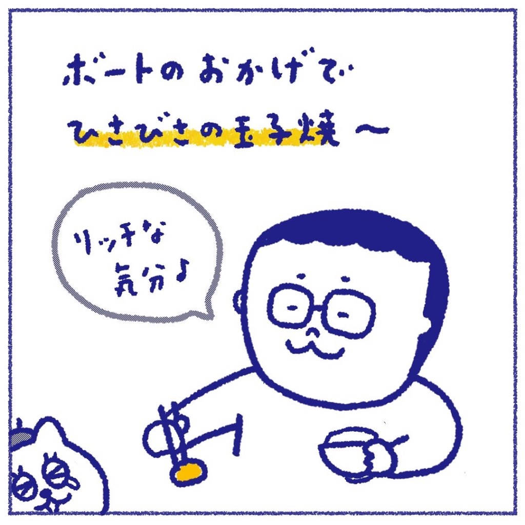 ボートのおかげで久々、食卓に玉子焼きがでたそうな。それを心から喜ぶゲンさん。どれだけ食事が船乗りに大事かわかるエピソード…泣ける。
