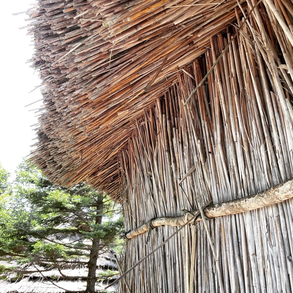 アイヌの家が再現されているのですが、この壁と屋根の茅葺の密度!