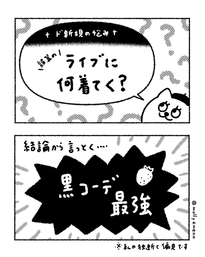 最近ヴィジュアル系に再びはまりまして、ついにライブに参戦・・・ライブに何着てく?問題を漫画にしてしまいました。