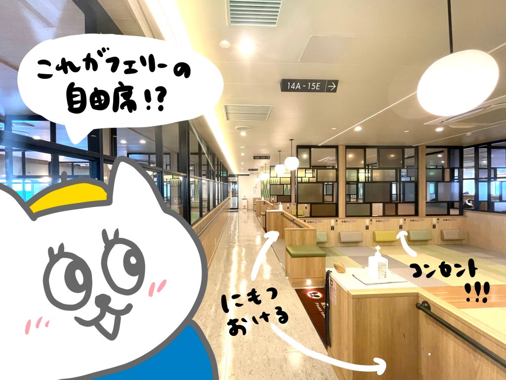 ▼フェリーの自由席って公民館みたいなとこが多かったイメージ…が、あおいちゃんの自由席、かわいい!めっちゃ素敵!