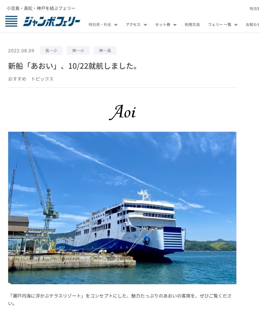 神戸とうどん県を結ぶ「ジャンボフェリー」に30ン年ぶりに新しい子が入ったんだ!