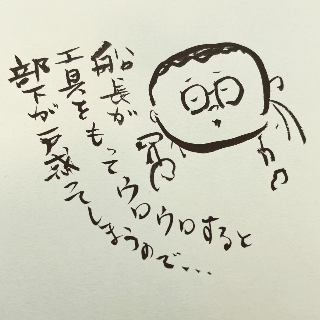 船長になる前は、工具をぎっしり持って行ったのに、あら、船長になると身軽ですね。