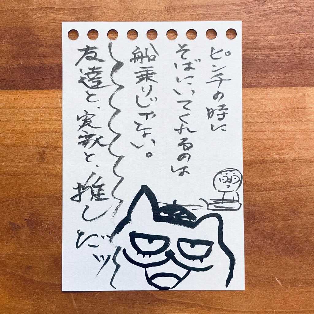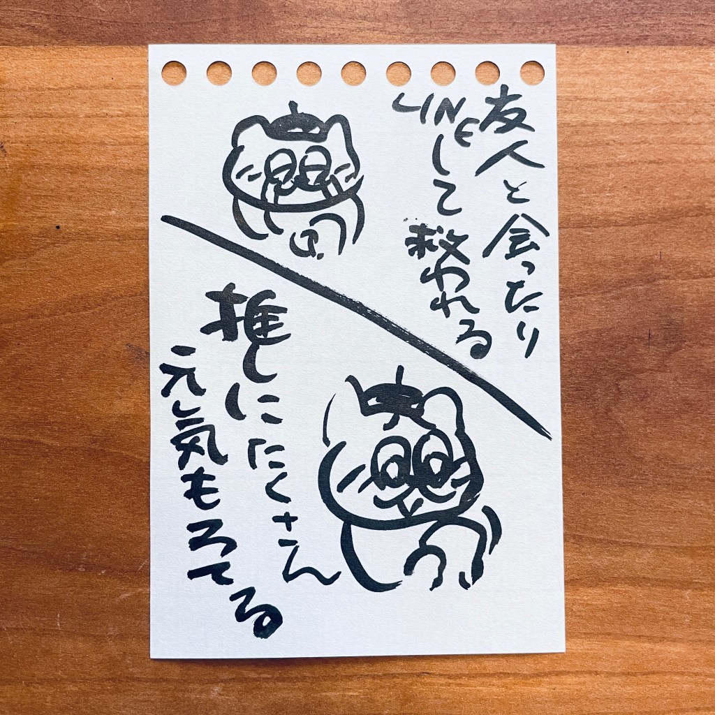 メンタルが折れそうなのを支えてくれているのは、友達と実家と推しの存在です。色んな方向から支えられてギリギリ生きてます。ほんま。