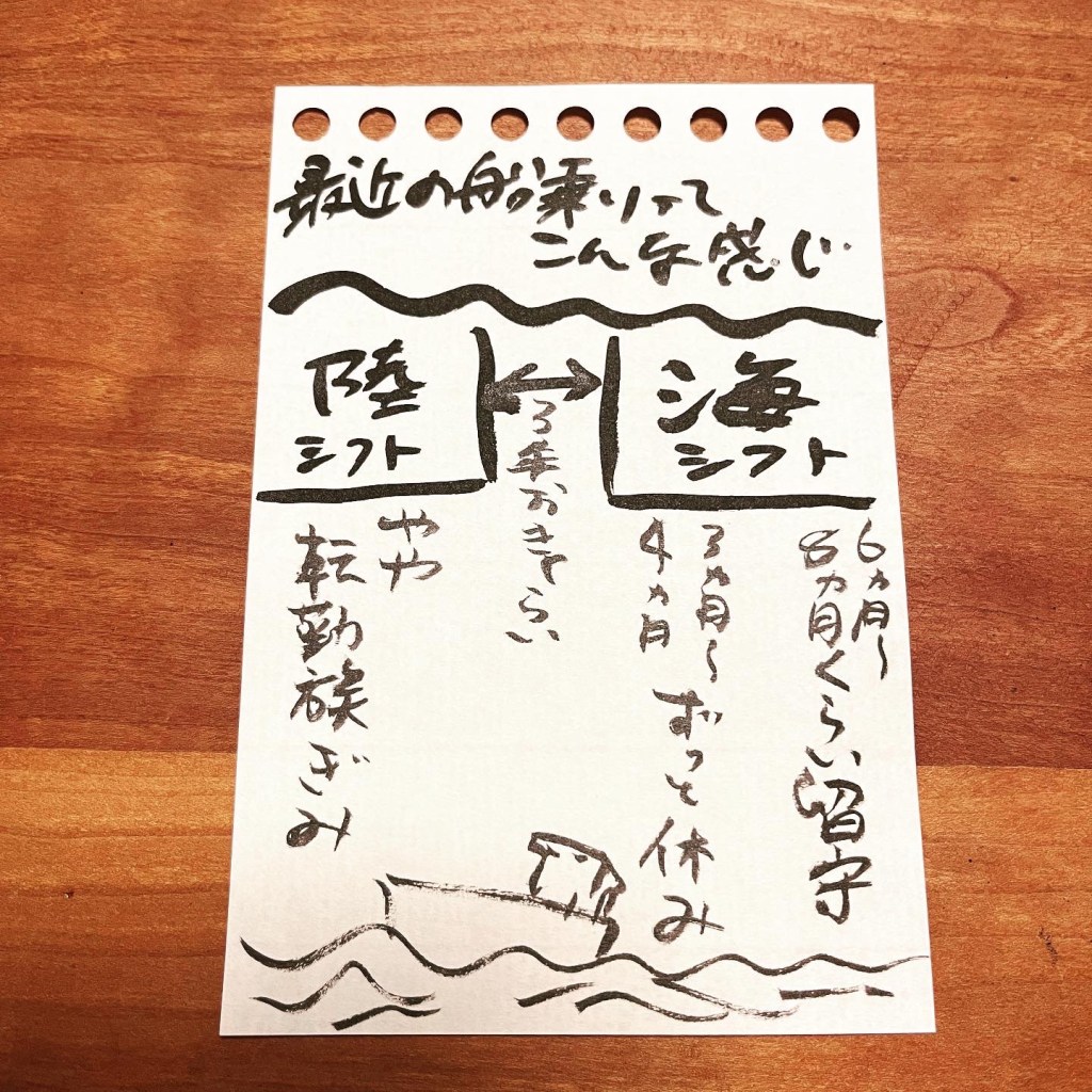 ほんと、船乗りの生き方ってむちゃくちゃ計画立たなくて、伴走するのだいぶ辛い。