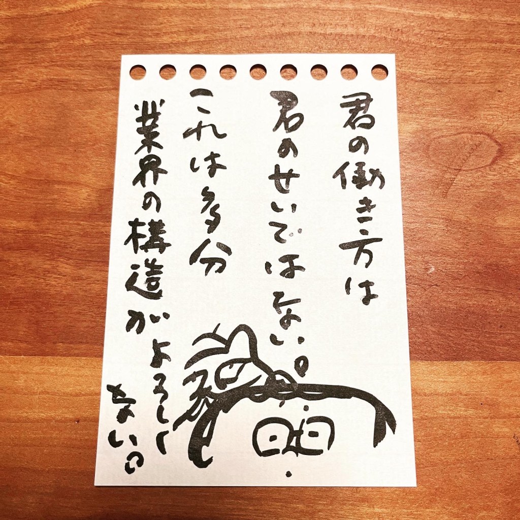 ただし少し希望はある。人手不足で強気になれるのもあるけど、最近20代30代はちゃんと「無理です」って会社に言える人が多いので、確実に風向きが変わってきています。