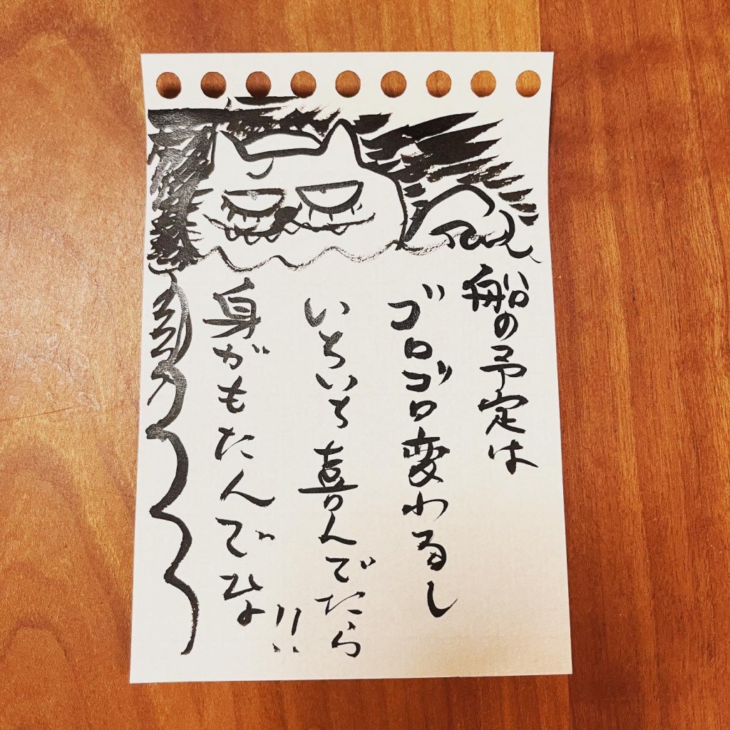 ごめん船乗りの予定は聞いてない。聞かない。聞いたところで変わるからな!!!!!!!今回だって一度下船が延期になってるからな。