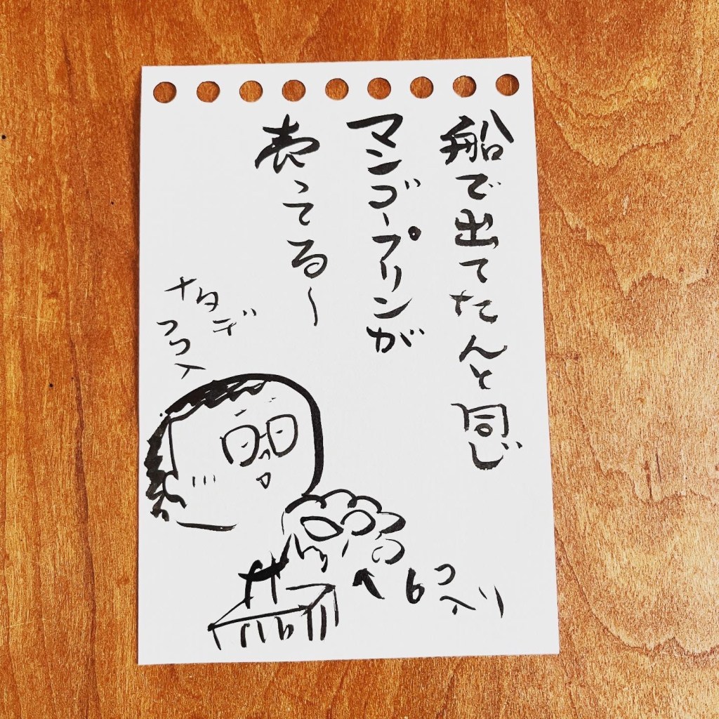船のギリギリな環境がつたわる一品でした。ちなみに、こういうシンプルなプリンが6個ドカンとパックになったやつです。