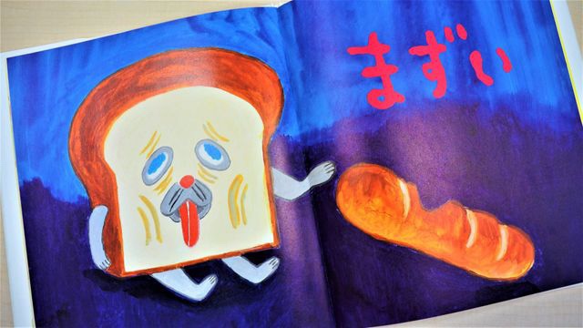 「まずい」のところは絵本「パンどろぼう」のまずい顔が好きすぎて、本作へのオマージュです。こんな絵本あることに爆笑。