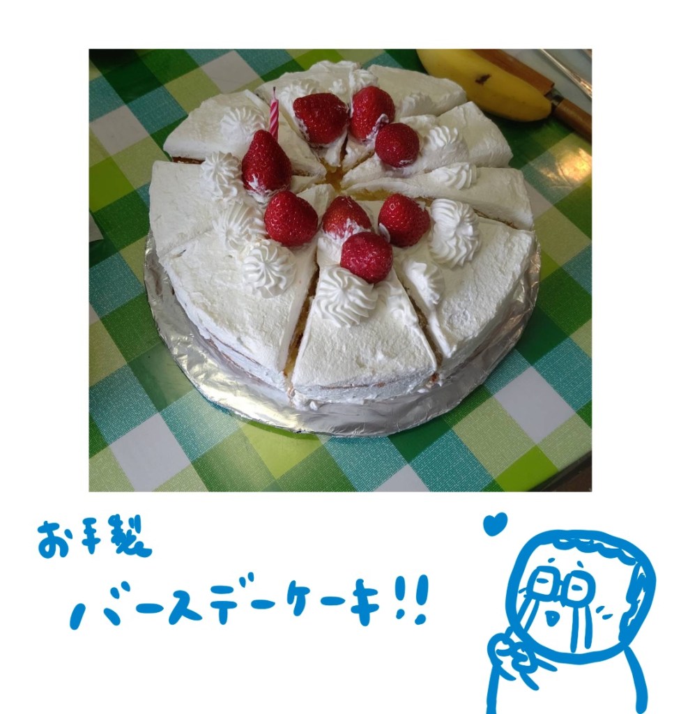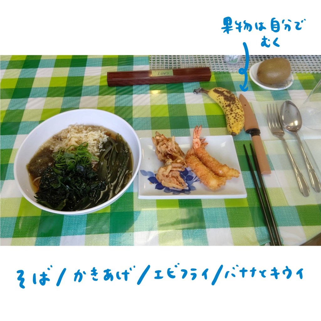 バナナが定番デザート、蕎麦の相棒はエビフライが多い(海老天に近いよね)。とっても嬉しいバースデーケーキ。