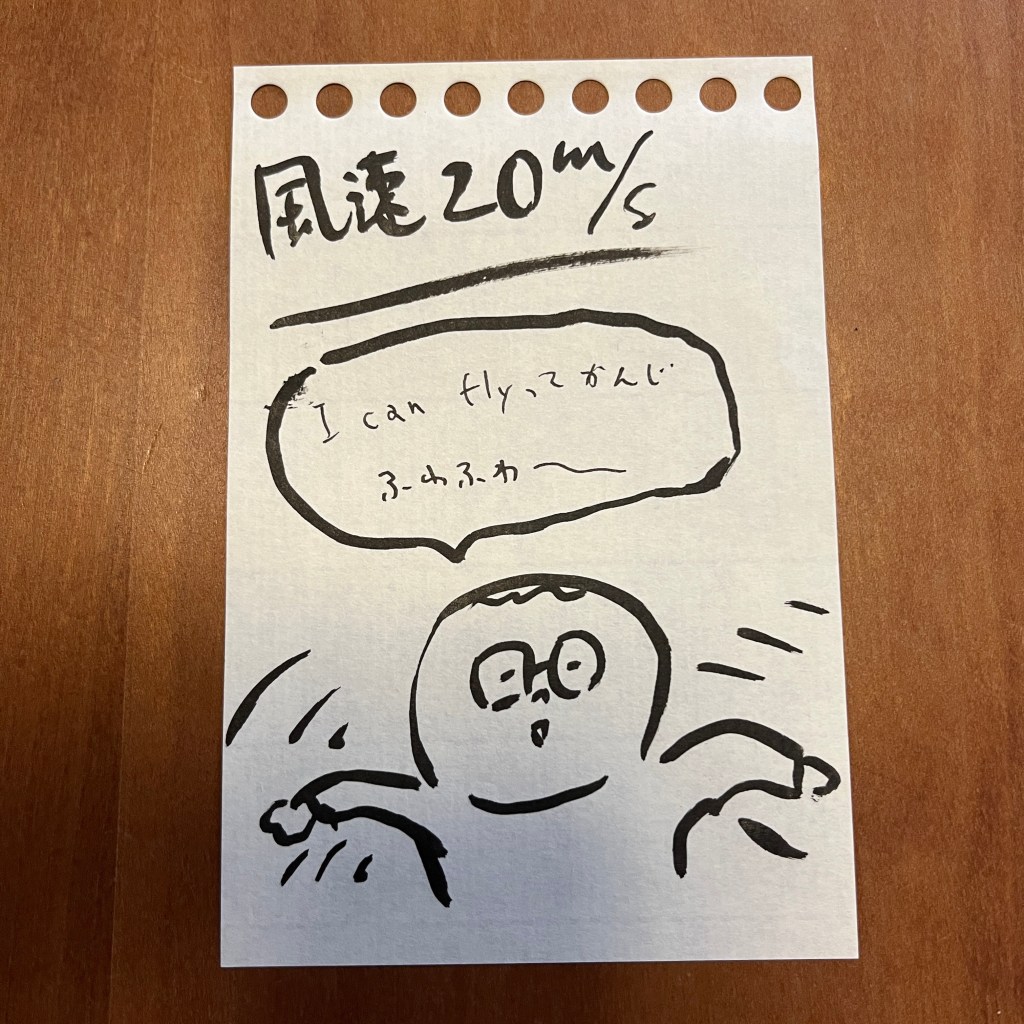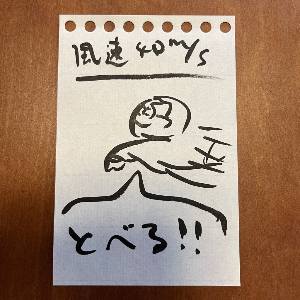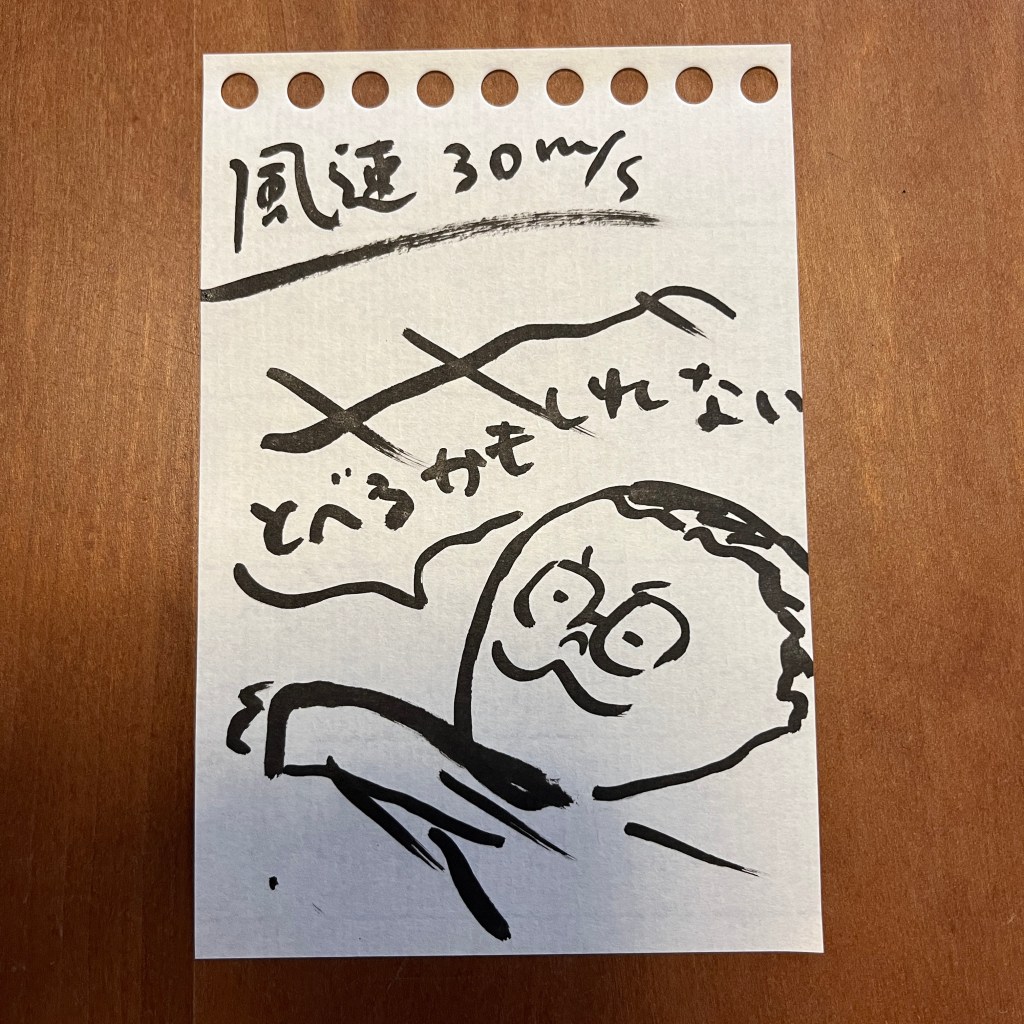 船長の体感は海での風速でして、陸だともう少し危ないとのこと。看板とか飛んでるもんな。