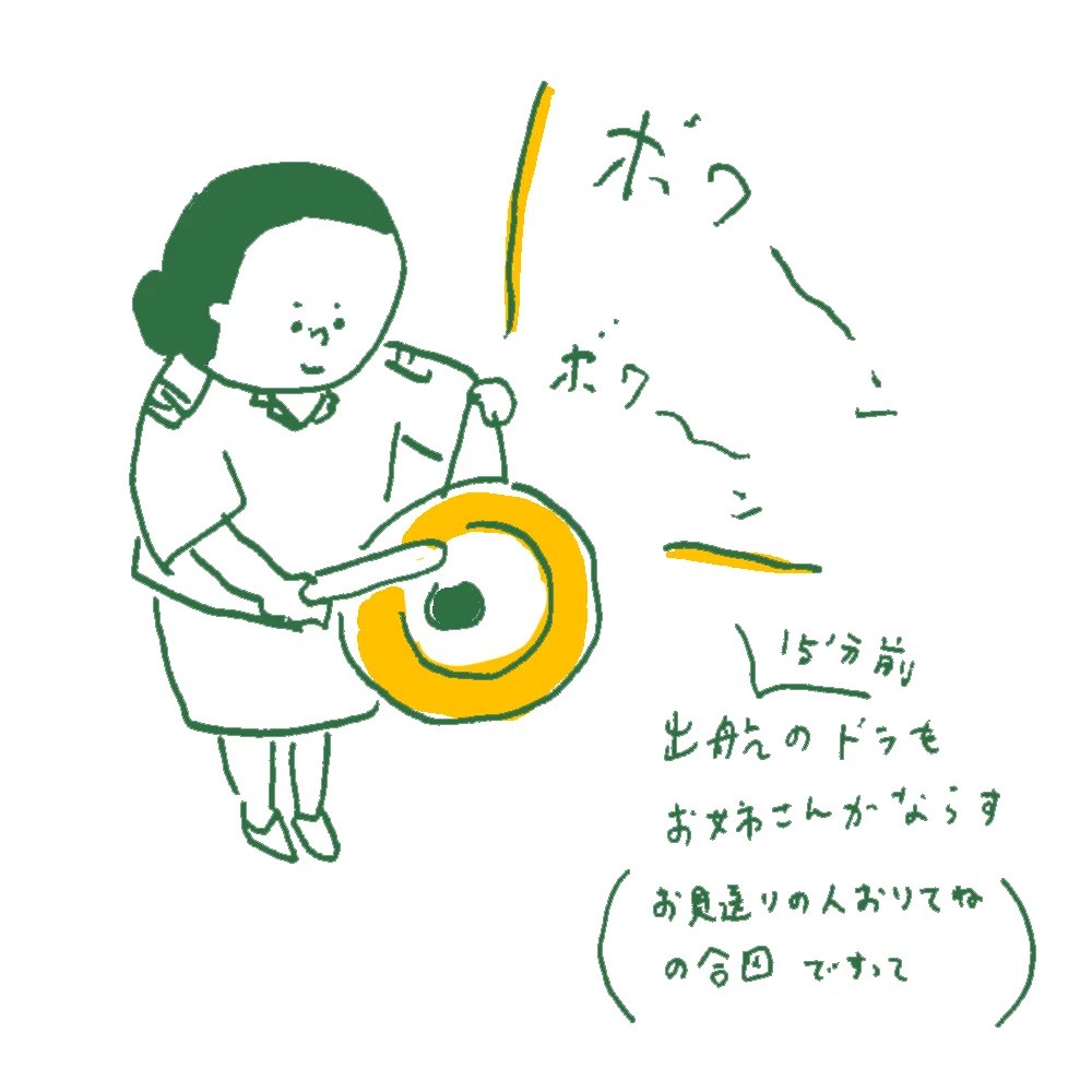 出航の時間が近づくとドラが鳴る
