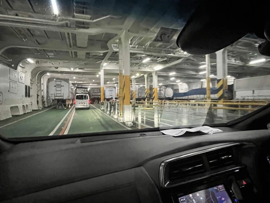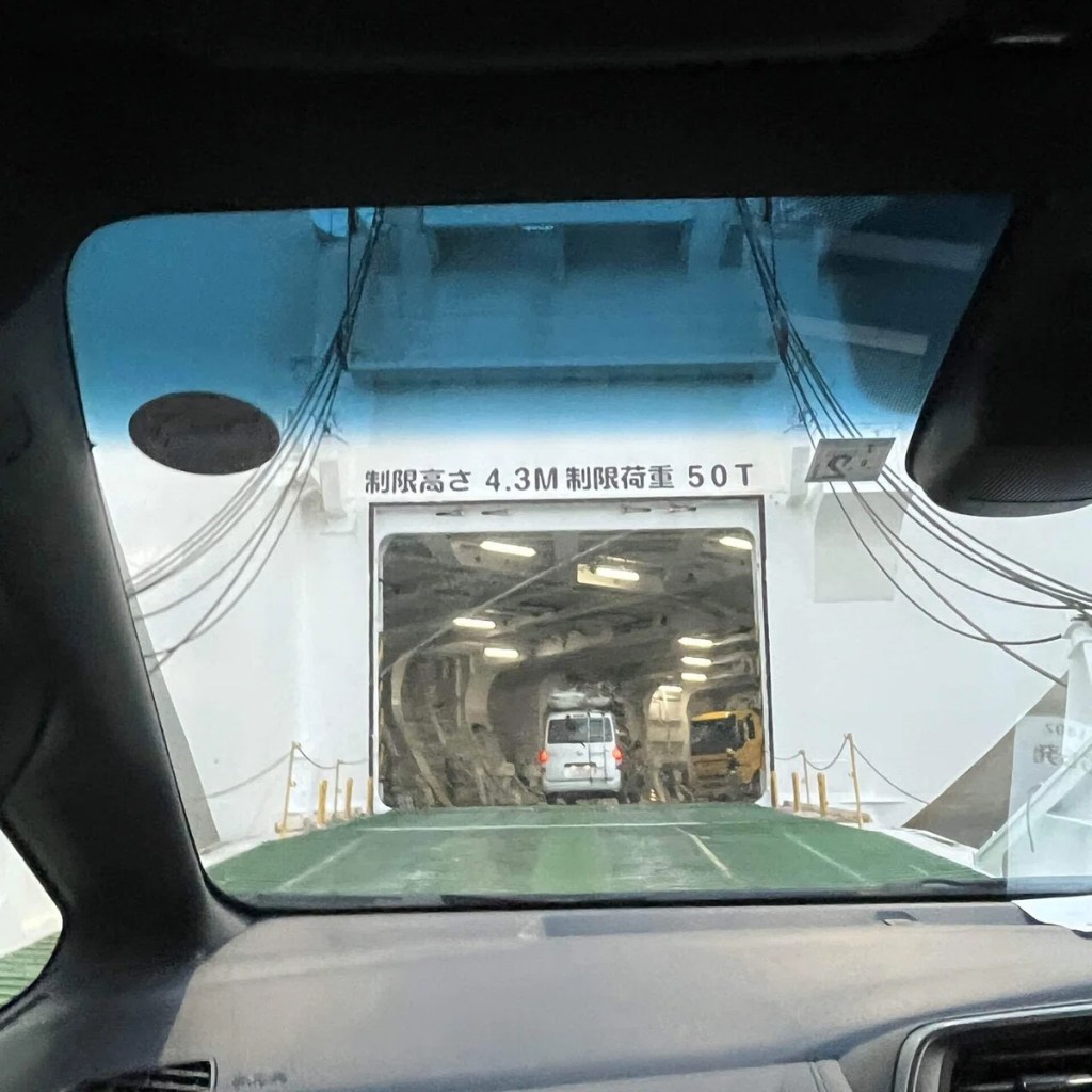 さて我々は船の中へ、車で乗り込みました。
