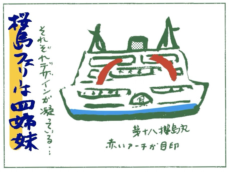 うどん屋がフェリー航行中の15分だけ営業する、桜島フェリー。キラキラネームの愛称を持った四姉妹がピストン運航でガンガンやってくる。