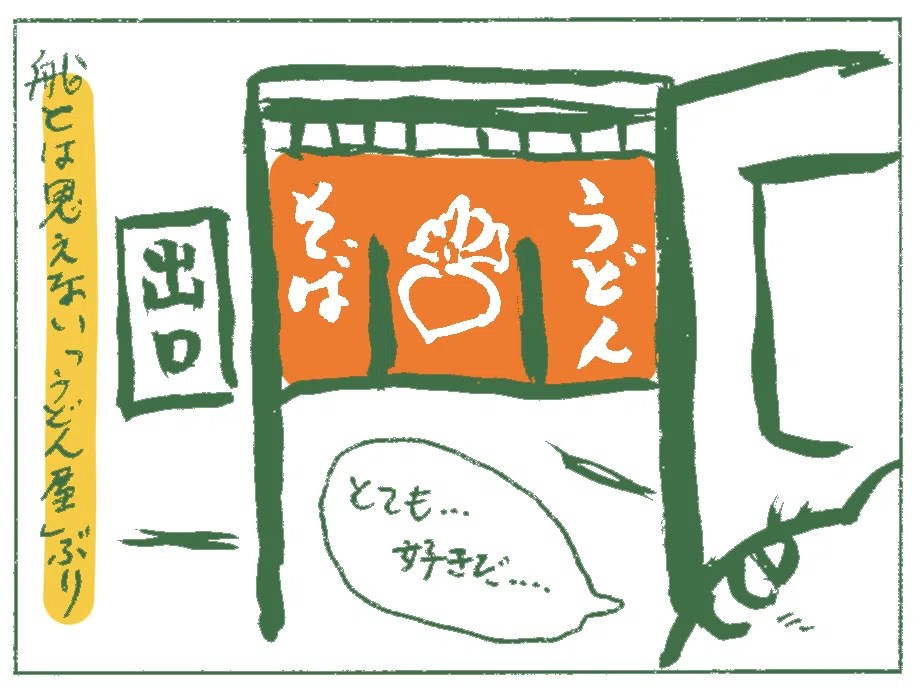 ちなみにうどんをスピーディーに提供するために、下茹でした麺を使っているそうな。フェリーの航行時間は15分やからね…