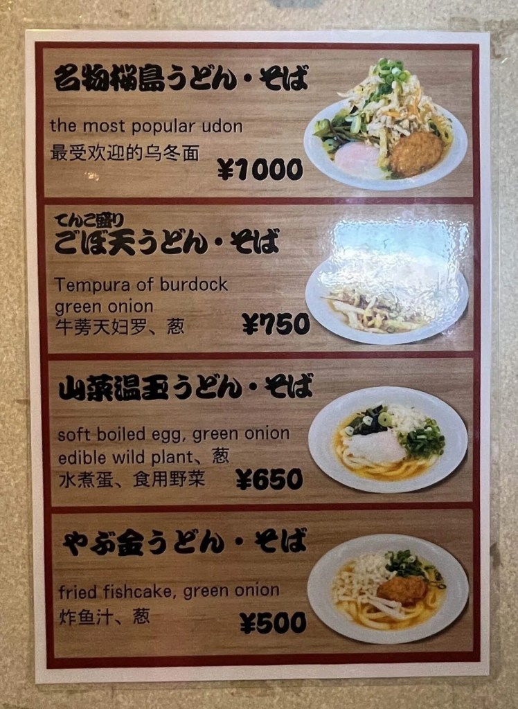メニューも良い感じなのですよ。特盛の桜島うどんとか。乗船時はお腹いっぱいで食べられなかったことがくやしい〜