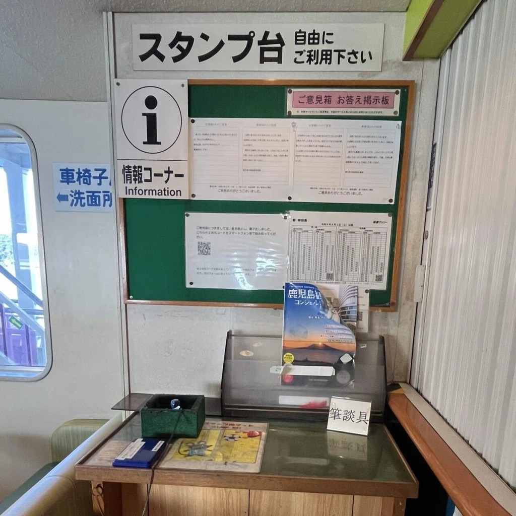 桜島フェリーの船内で記念スタンプが押せる。これまた船内というか、観光案内所みたいなたまらん風情。