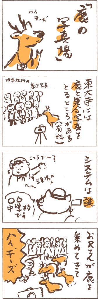 奈良に修学旅行に来た時のオプションメニュー「鹿と集合写真」。