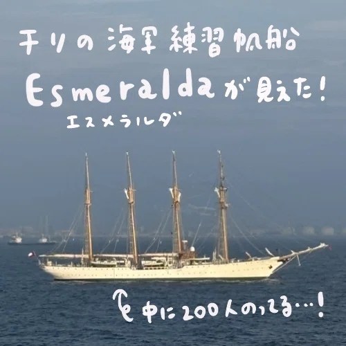 大阪港の沖では珍しいチリ海軍の練習帆船に遭遇しました。関西万博のパレードに参加するために地球の裏側からやってきてくれたそう…!
