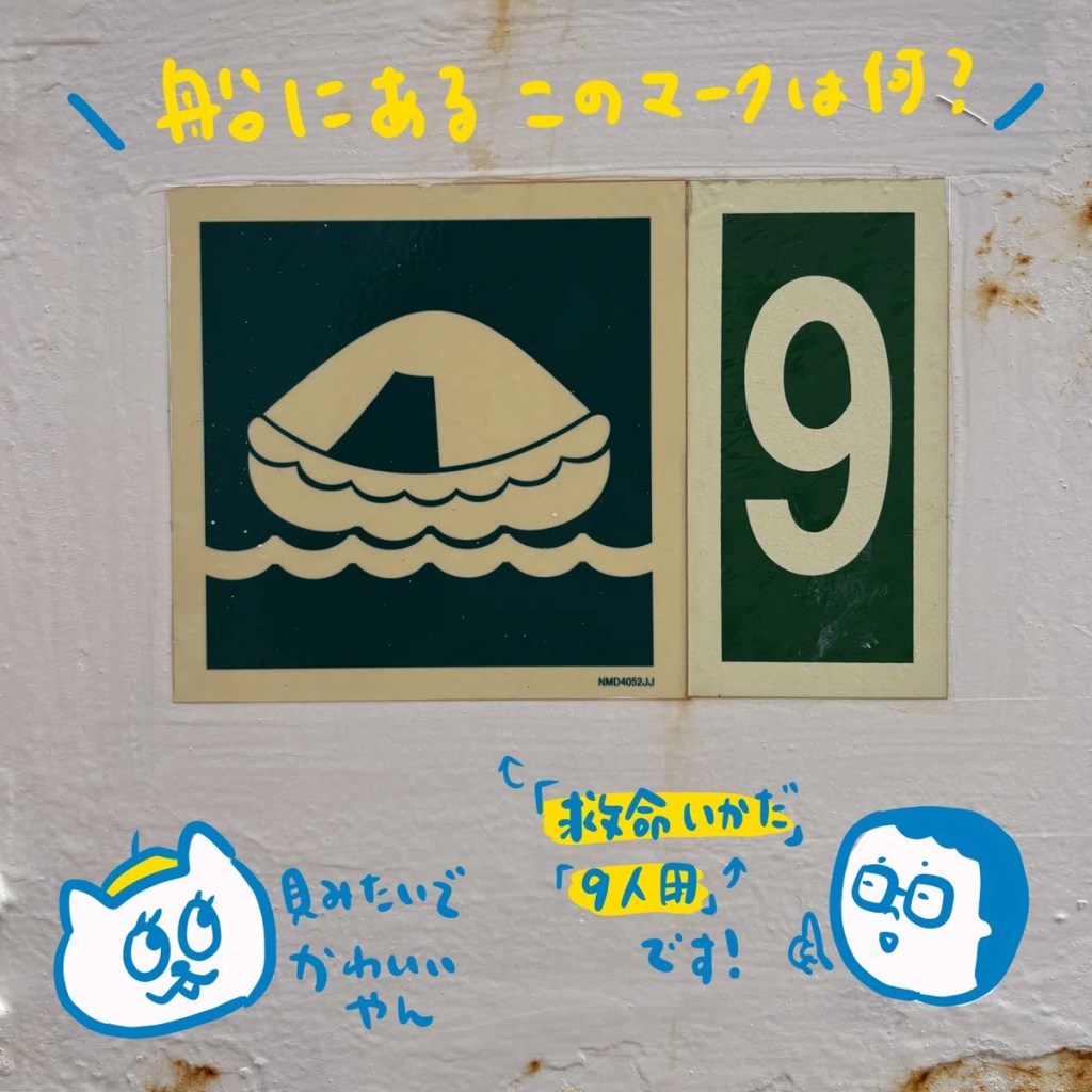船内をぶらぶらしていると、色んな標識やら道具があるのでずっと退屈しません(我らはな…)。