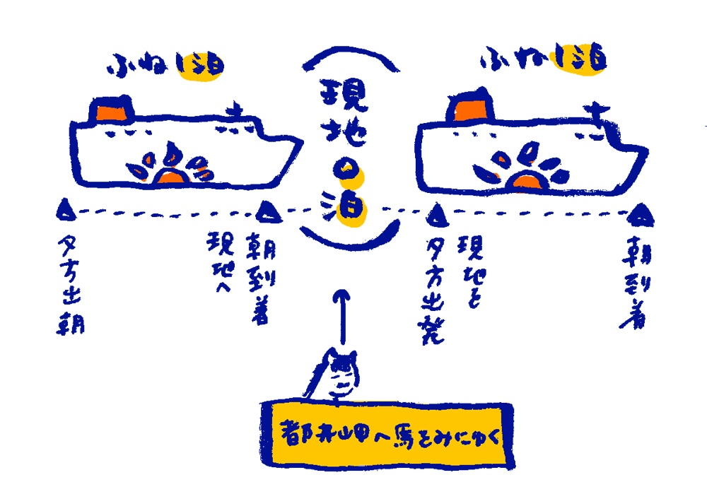 夜行フェリーで遊びに行って、また夜行フェリーで帰る。要は現地で泊まらず帰るフェリー旅です。