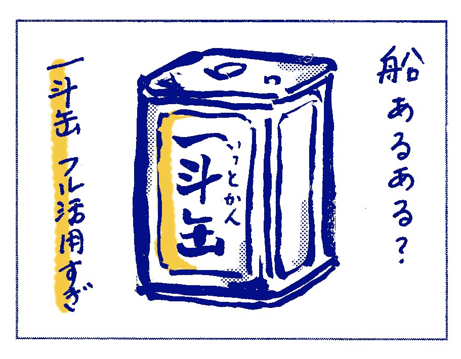 船乗りに身近なもの「一斗缶」。ほんまかいな。業務用の油とか、たまにおかきとかも入ってる銀色の缶です。